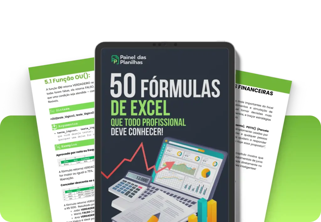 As 50 fórmulas mais importantes do Excel, organizadas para você aprender e aplicar imediatamente, sem enrolação.