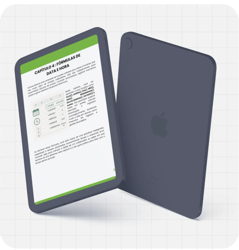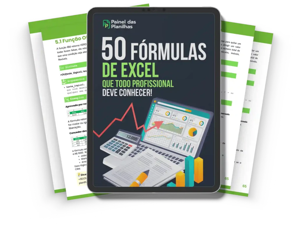 Com esse e-book, você aprende as 50 fórmulas mais usadas no Excel para resolver até 80% das tarefas do dia a dia , sem depender de ninguém.